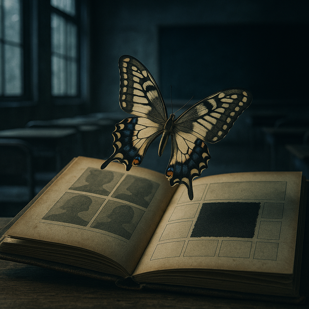 卒業アルバムの“黒塗り”が意味する「記憶の抹消」に対し、彼女が物語の中で蘇っていく様子は、まさに蛹から成虫へと変化する蝶のメタファーと重なっていきます。