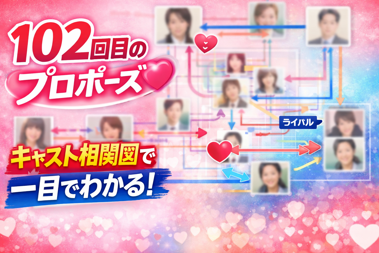 この記事では、『102回目のプロポーズ』相関図付きで解説しながら、キャスト関係をわかりやすく整理していきます。